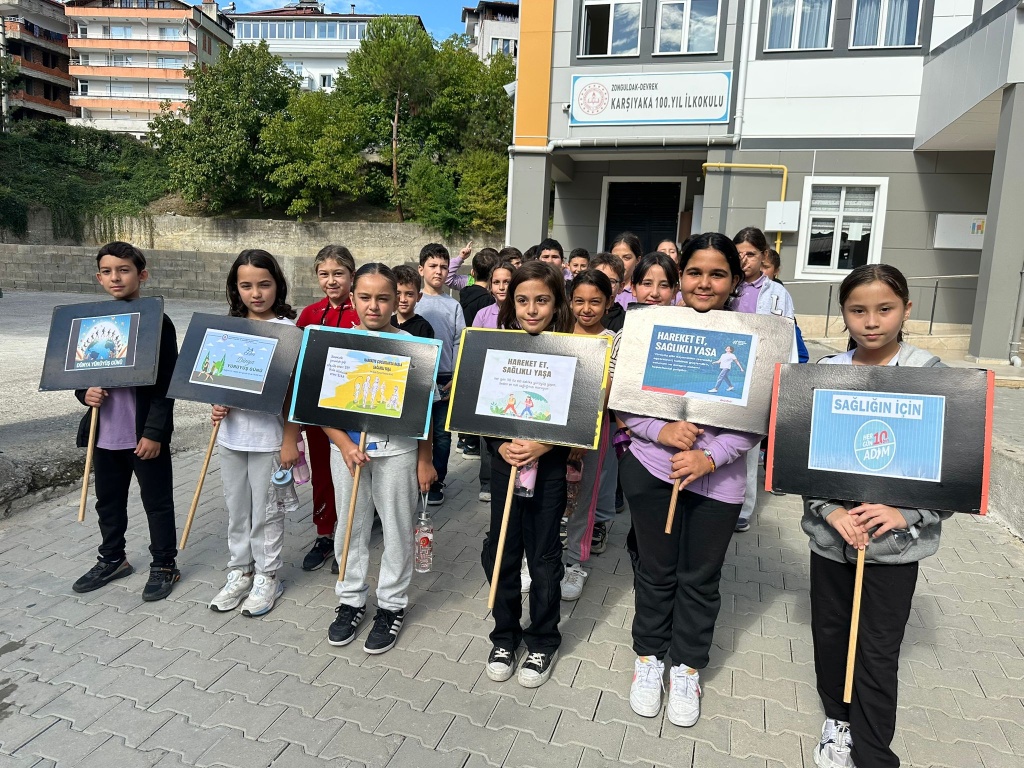 3-4 Ekim Dünya Yürüyüş Günü 1991 yılında başlatılan Dünya Yürüyüş Günü, bakanlıklar koordinasyonunda ülkemizde de çeşitli etkinlikler ile kutlanmaktadır. Bu kapsamda Karşıyaka 100. Yıl İlkokulu olarak bizlerde Okulumuzda "3 Ekim “Dünya Yürüyüş Günü” haftasını Karşıyaka Mahallemizde 4. Sınıf Öğretmen ve öğrencilerinin katılımı ile döviz ve pankartlar eşliğinde yürüyüş parkurunu tamamladık .